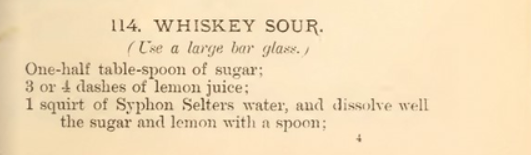 Una de las primeras referencias impresas relevantes para el Whiskey Sour se encuentra en el Harry Johnson’s New and Improved Bartender’s Manual (1882). En ese contexto, la receta aparece como parte del repertorio técnico de barra de su época y permite comparar directamente la formulación histórica con los estándares modernos.